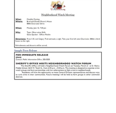 Read through the manual on the home page from the National Neighborhood Watch Program.